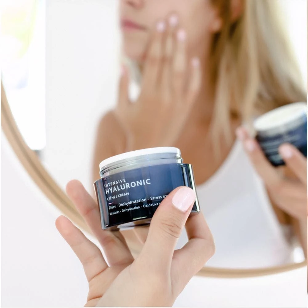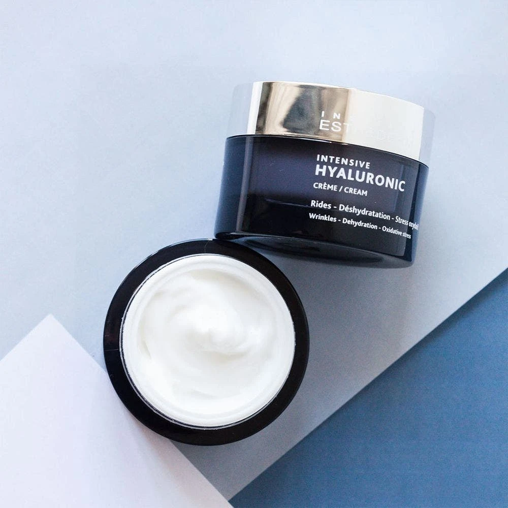 L’Intensive Hyaluronic Cream, formulato con una sinergia brevettata di 3 acidi ialuronici, idrata intensamente, rimpolpa la pelle e riduce rughe e linee di espressioni sottili.