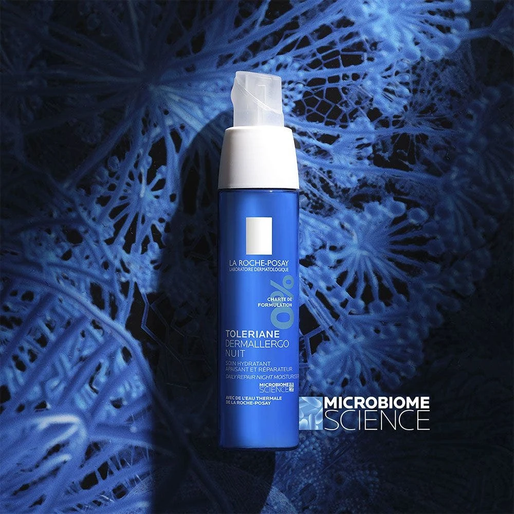Una nuova scoperta scientifica: la pelle allergica soffre di uno squilibrio del microbioma. Per un’efficacia ottimale, l’innovazione dermatologica di La Roche-Posay compensa lo squilibrio del microbioma con una nuova frazione probiotica esclusiva, lo Sphingobioma, per rafforzare le difese naturali della pelle. Toleriane Dermallergo lenisce le irritazioni in 1 minuto, ripara la barriera in 1 ora e idrata per 48 ore. Grazie alla Vitamina B6, questo trattamento lenisce e protegge la pelle per tutta la Notte.