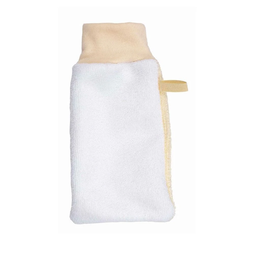 Guanto struccante con spugna di bambù e microfibra per detergere delicatamente la pelle da mista a grassa.