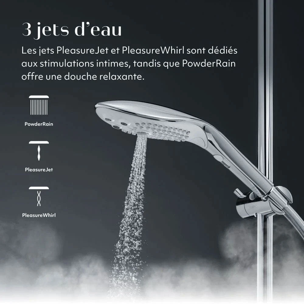 - Una varietà di sensazioni con 3 diversi getti d’acqua e intensità di pressione con la semplice pressione di un pulsante!