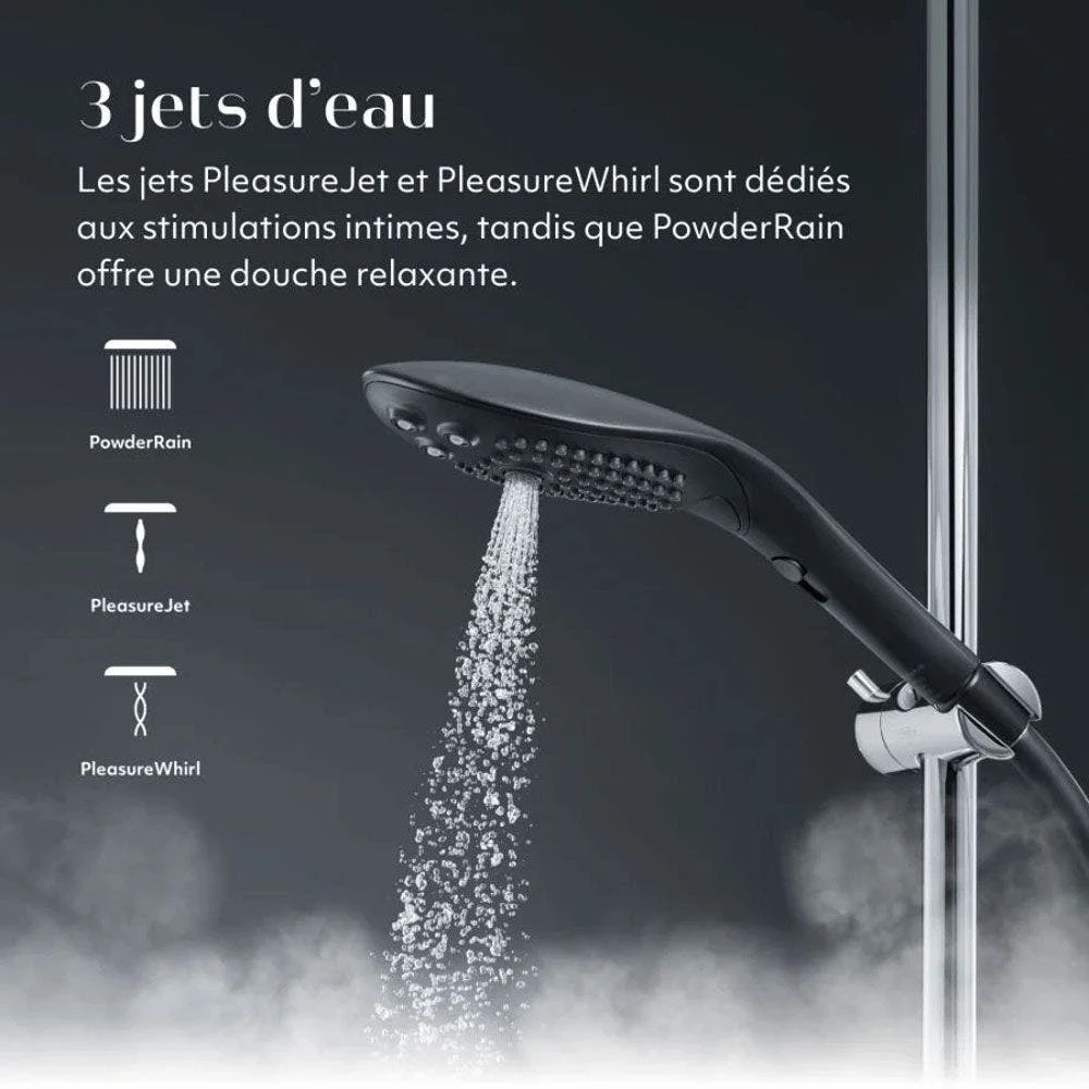 - Una varietà di sensazioni con 3 diversi getti d’acqua e intensità di pressione con la semplice pressione di un pulsante!