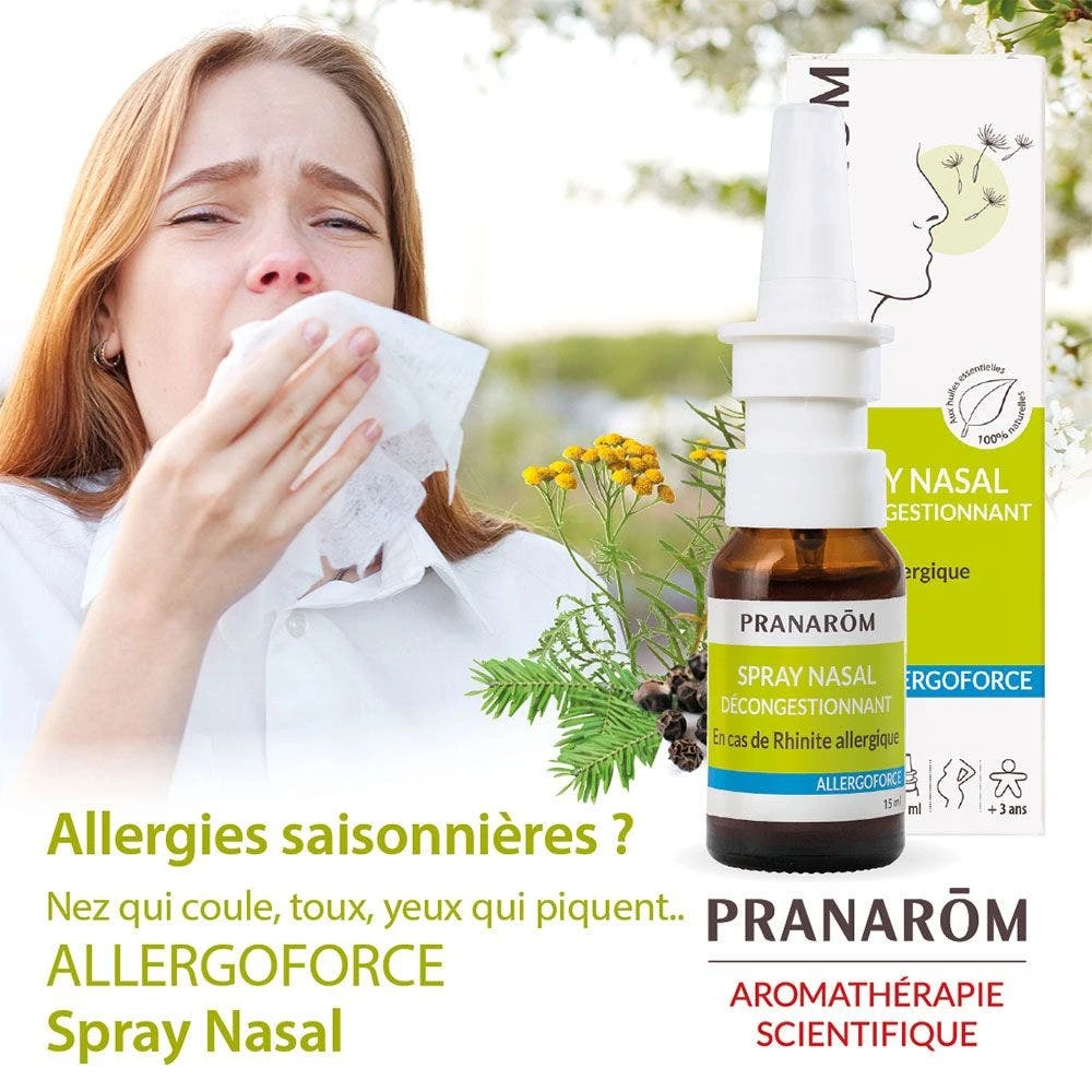 Gli oli essenziali di tansia, matricaria, camomilla e pepe nero sono riconosciuti per le loro proprietà antiallergiche e antinfiammatorie. Allergoforce Spray Nasale riduce il naso che cola e la congestione causata da pollini, polvere, acari, ecc.