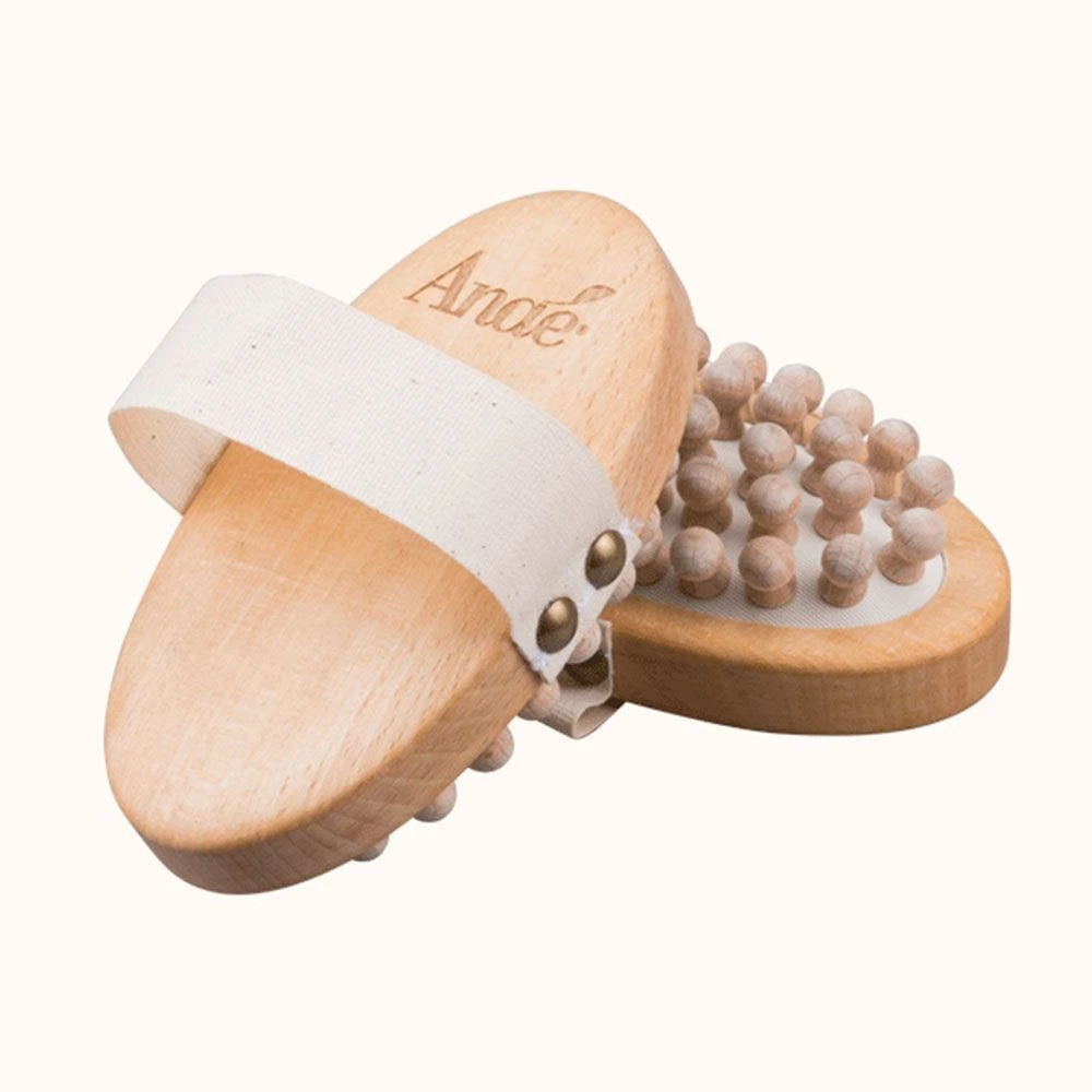 Spazzola in legno di faggio cerato con Picot in legno d’acero appositamente studiata per il massaggio delle zone grasse,