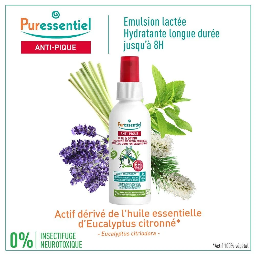 Lo Spray Repellente per Famiglie Zone Temperate di Puressentiel è un’emulsione lattiginosa delicata e idratante, arricchita con aloe vera. Questo spray latticini respinge efficacemente zanzare tigre, zecche e altri insetti pungenti presenti nelle zone temperate, per 6 ore o più1. Può essere utilizzato a partire dall’età di 1 anno ed è adatto a tutta la famiglia.